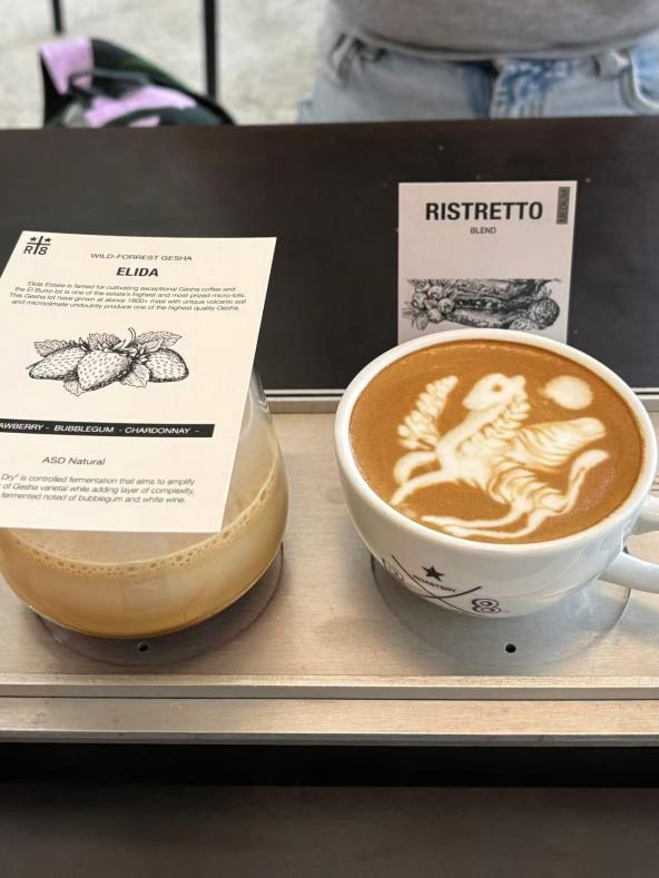 更惊艳的是拉花——独角兽在杯中流转,灵动如生。特调也充满巧思:“Sex on the Rock”荔枝的清甜与奶油的绵密交织;“Blvck & Yellow”则扑面而来热带芒果的奔放香气。