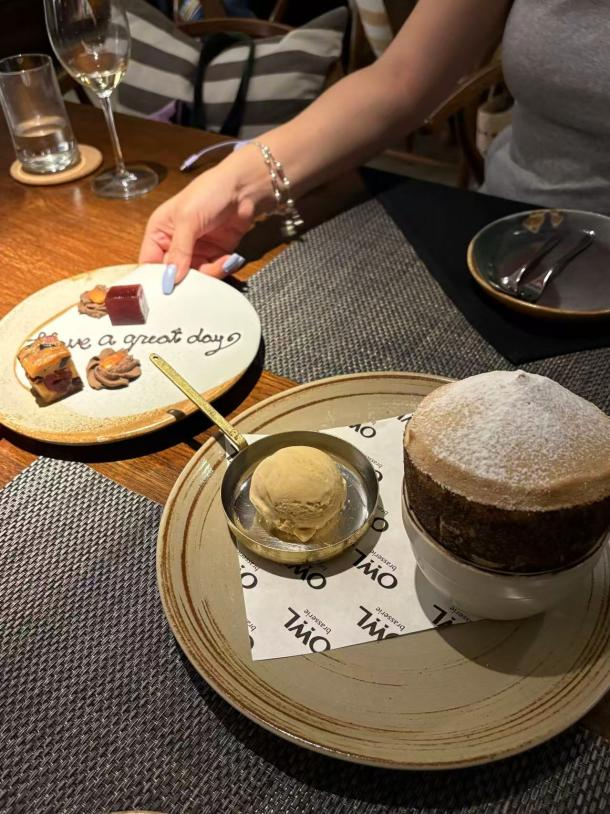 OWL brasserie的主厨以前在伦敦顶级酒店Rosewood工作,菜做得精致,口味正宗。最喜欢那道澳洲牛,五分熟、油脂四溢,蘸上草本黄油简直神来之笔。