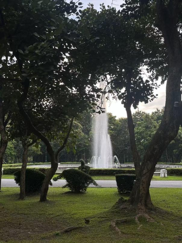 校园依偎在素贴山脚下。别打车到校门口,还要走一段冤枉路,可以直接打到Angkaew Reservoir(静心湖),一下车便是湖光山色、绿树成荫。傍晚时分与友人坐在湖边,静静眺望远处山坡上身穿浅蓝色校服的学生在草地上嬉戏打闹、毕业班在合影留念、校园情侣骑着单车在草垛间穿梭,车铃轻响,风掠过他们的衣角。